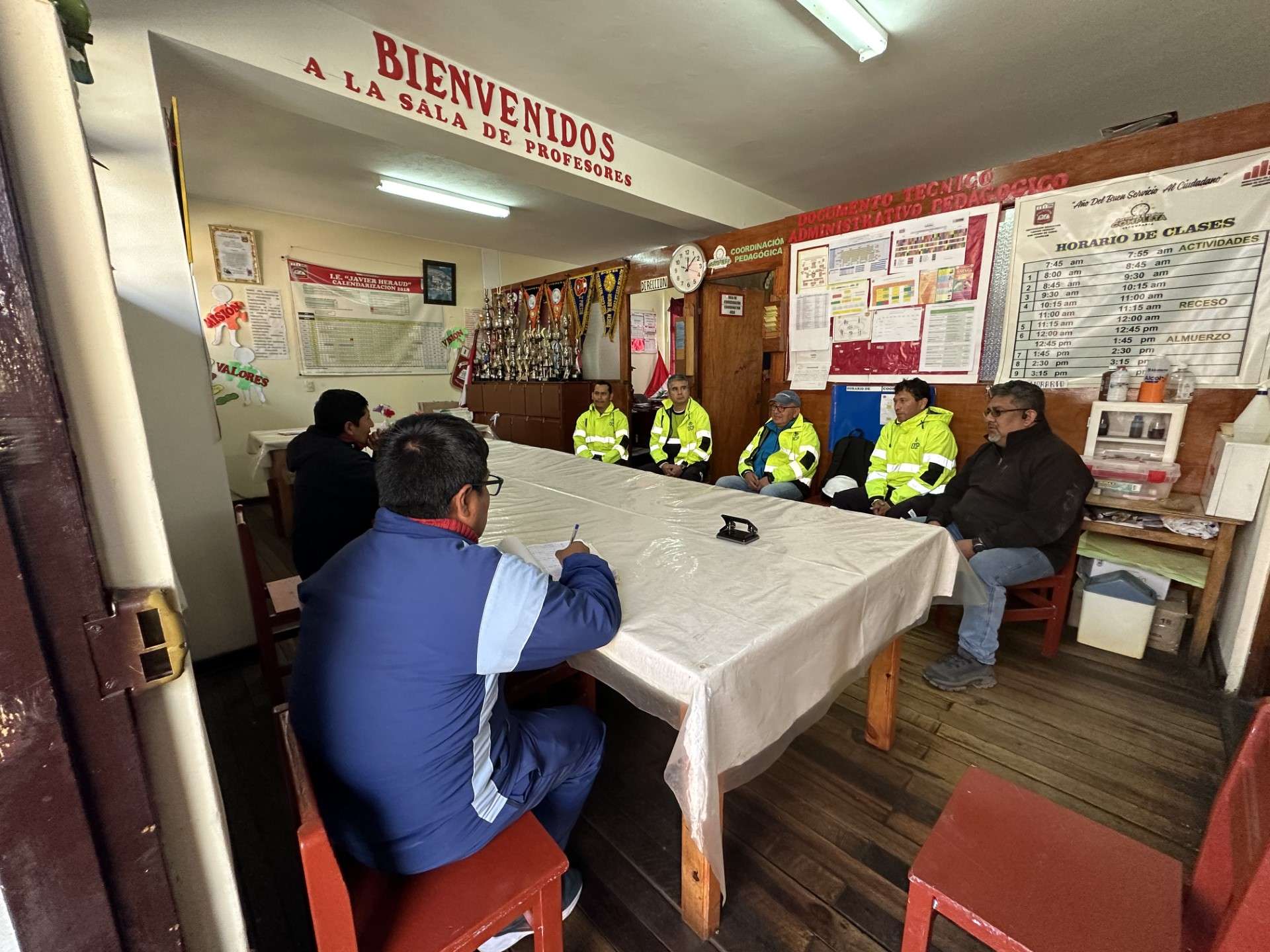 En el marco de nuestra Responsabilidad Social Empresarial, en nuestro eje y pilar de educación con las comunidades del área de influencia, OCP-Cobriza visitó las instalaciones de la Institución Educativa Pública: Javier Heraud en San Pedro de Coris, el día viernes 23 de junio del presente año, con el equipo conformado por el gerente general de OCP-Cobriza, Ing. José Luis Alcala; el gerente de Desarrollo Social, Ing. Walter Rondinelli; el superintendente de Recursos Humanos, Ing. Luis Flores y el superintendente de Mantenimiento, Ing. Kimm Román, en coordinación con el director de la institución educativa, Rusbell Espinoza y la directiva, realizaron el recorrido de las instalaciones del centro estudiantil.
