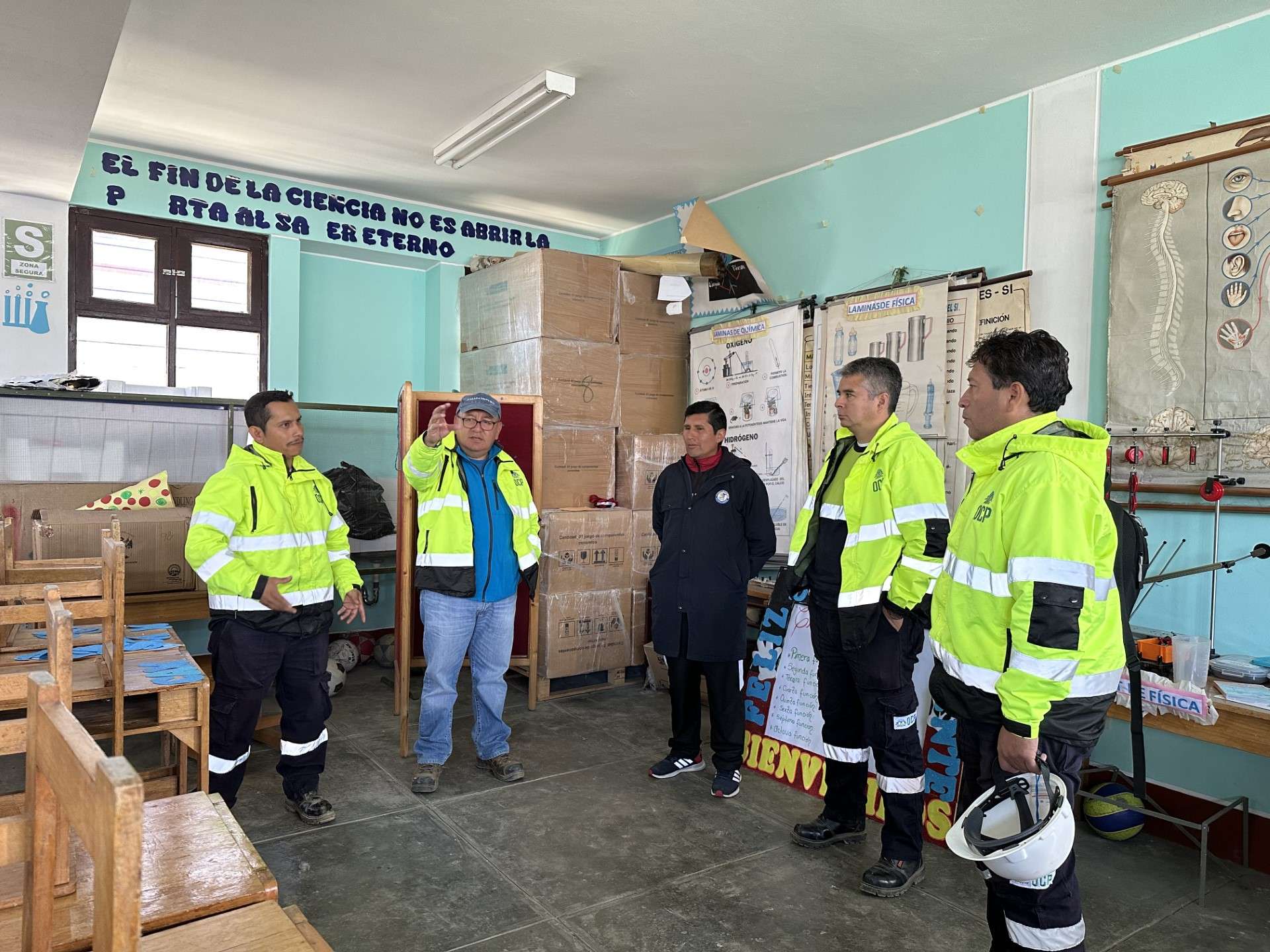 Esta visita tuvo como propósito evaluar espacios de contribución al desarrollo y mejora de las actividades del día a día de los estudiantes quienes cursan el nivel secundario de formación, donde se identificaron varios puntos de mejora, destacando entre los más críticos la situación del comedor y cocina, se observó mobiliario, menajes y ambientes deteriorados, así también se evidenció la falta de recursos multimedia y de materiales en los laboratorios de ciencia, física y química que son de utilidad para los estudiantes de esta institución educativa.