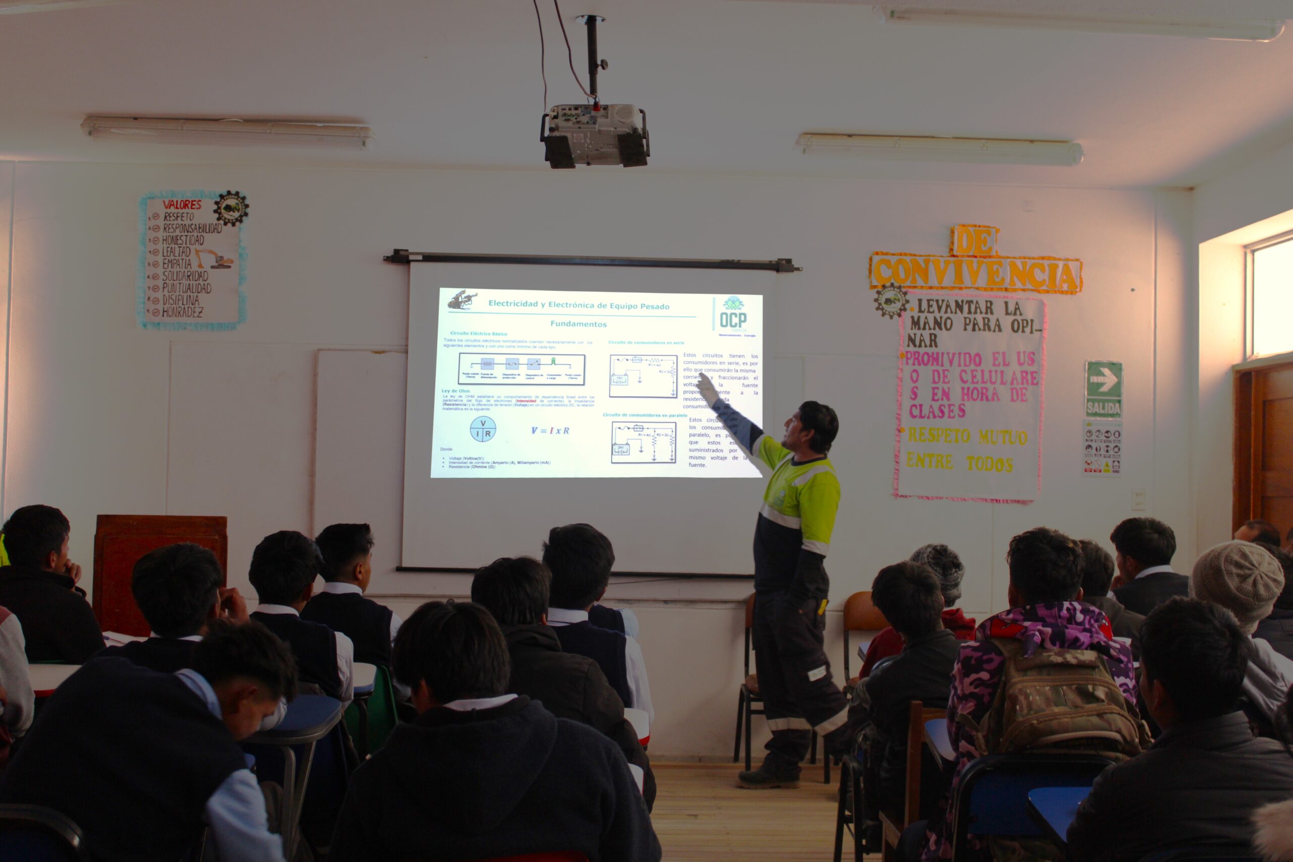 Estas ponencias tienen por finalidad, contribuir con el fortalecimiento de habilidades y aprendizajes de los estudiantes de Coris, estando a cargo el superintendente de Mantenimiento, Ing. Kimm Román, y el jefe de Mantenimiento Eléctrico, Ing. Julio Chipana de OCP-Cobriza, quienes compartieron sus conocimientos técnicos y amplia experiencia. En esta jornada se abarcaron los siguientes temas: Fundamentos básicos de los Sistemas Hidráulicos hasta la Electricidad y Electrónica en Equipos Pesados, desarrollando los temas de lectura de la simbología de conexiones, accionamiento de válvulas, motores y tuberías.